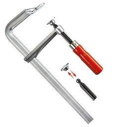 F-подобная струбцина с винтовым механизмом сжатия используется для фиксации деталей из разных материалов. Корпус изделия выполнен из стали, а наличие сменных губок позволяет значительно увеличить эффективность использования устройства.