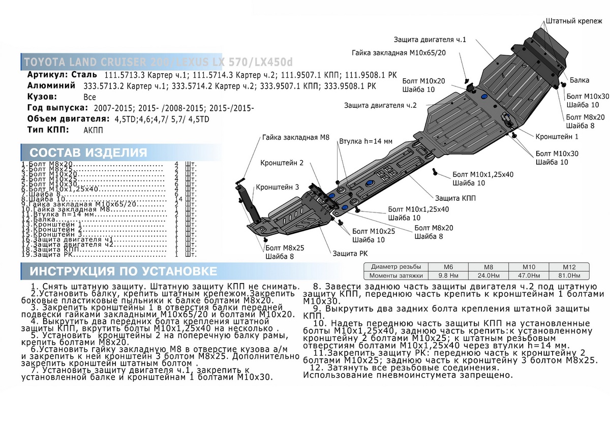 - Совместимые автомобили Lexus LX III (V - 5.7) 2007-2015; Lexus LX III рестайлинг (V - 4.5D; 5.7) 2015-н.в.; Toyota Land Cruiser 200 (V - 4.5D; 4.7) 2007-2012; Toyota Land Cruiser 200 рестайлинг (V - 4.5D; 4.6) 2012-2015 2015-н.в.