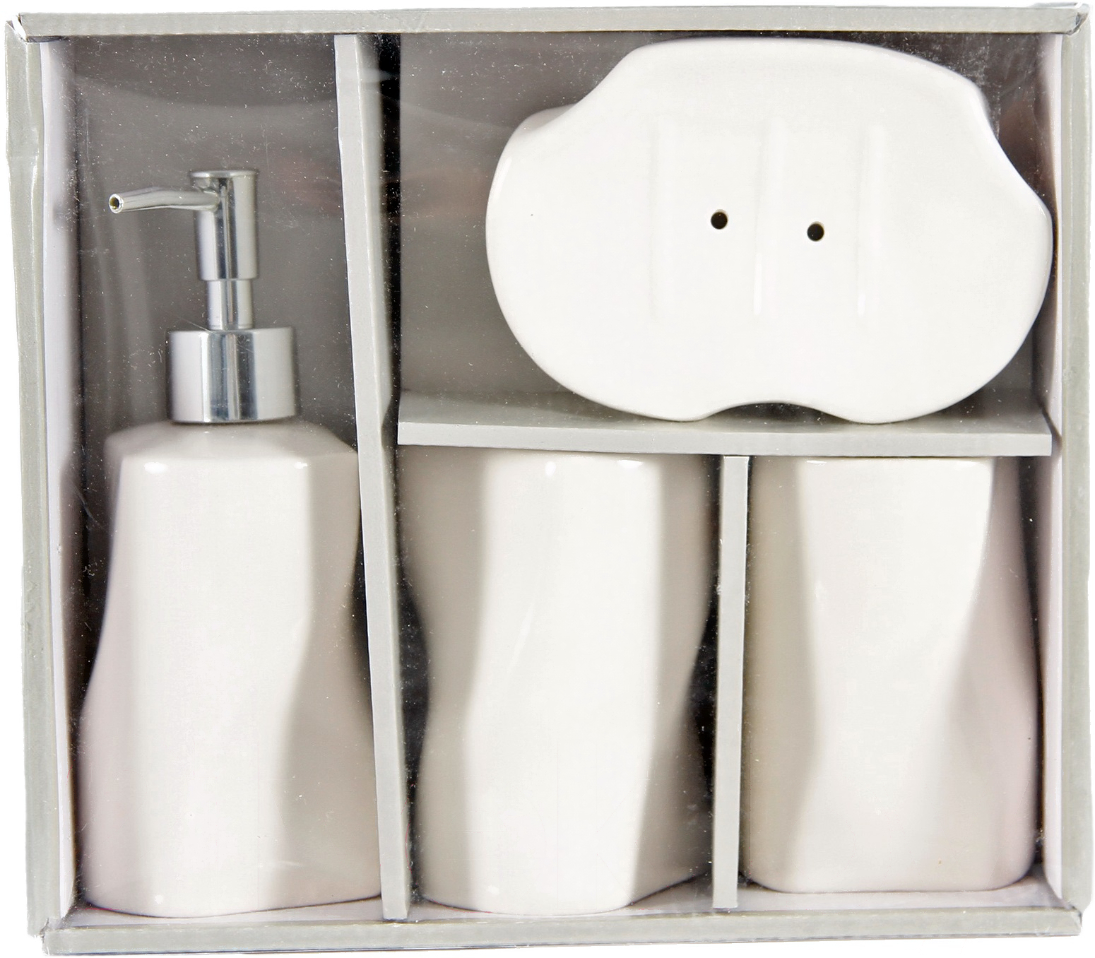 • Комплектация дозатор жидкого мыла, мыльница, стакан для зубных щеток, стакан косметический