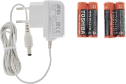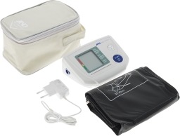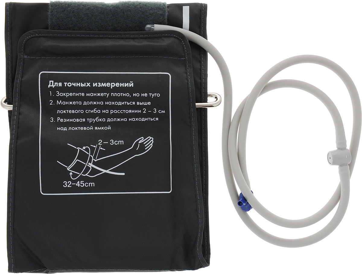 • Комплектация Тонометр, манжета увеличенного размера 32 - 45 см, сетевой адаптер, чехол, 4 батарейки типа AA, инструкция