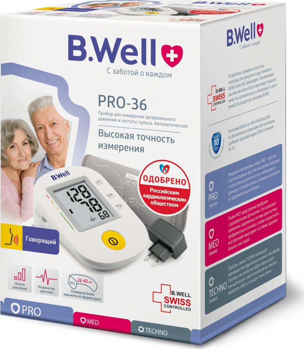 Тонометр B.Well PRO-36 (M-L) манжета (22-42 см), адаптер, говорящий, индикатор аритмии