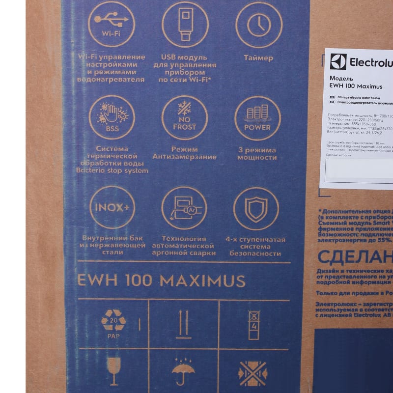 Водонагреватель Electrolux Maximus, 100 Л, нержавеющая сталь