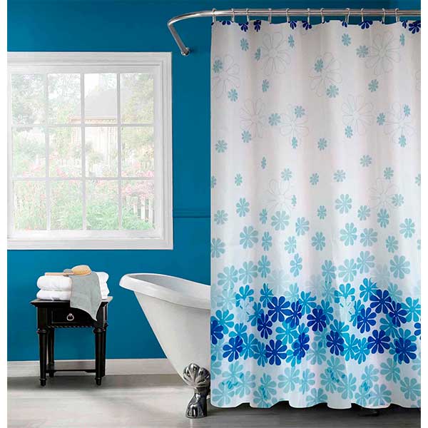 Шторка для ванной FORA Цветочный дождь, голубая, PH98