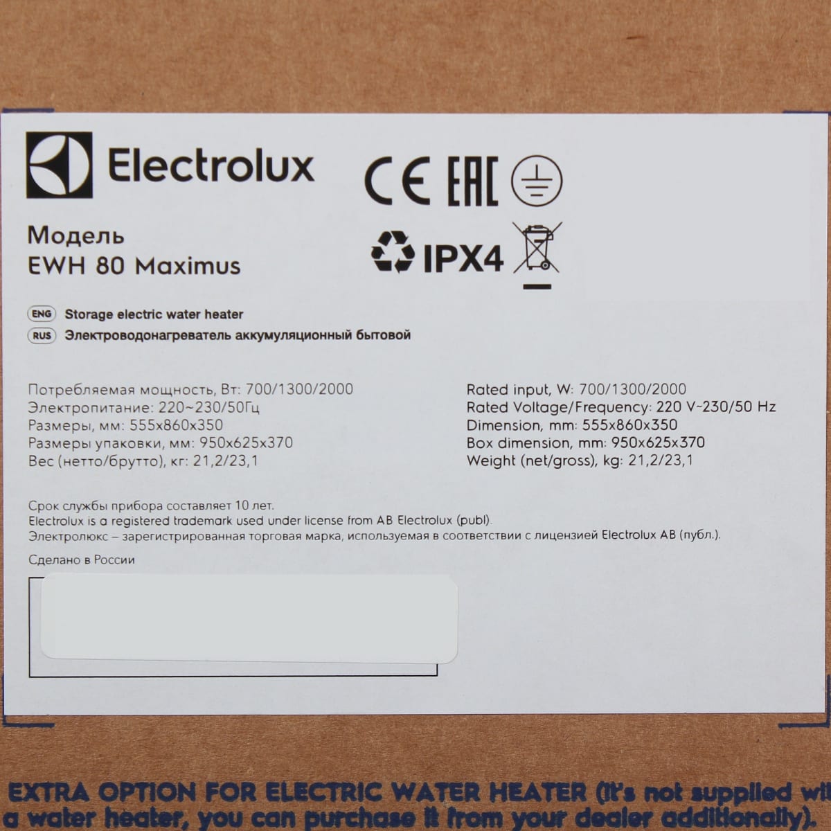 Водонагреватель Electrolux Maximus, 80 Л, нержавеющая сталь