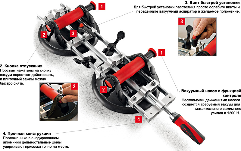 Bessey PS130 - специализированное зажимное устройство, которое используется для зажима деталей из стекла, дерева и пластика. Устройство оснащено вакуумным насосом и маркировочным кольцом для его контроля. Удобные размерные параметры изделия гарантируют легкую эксплуатацию и транспортировку.