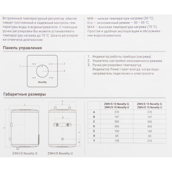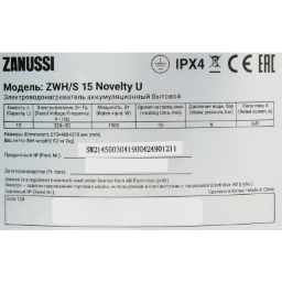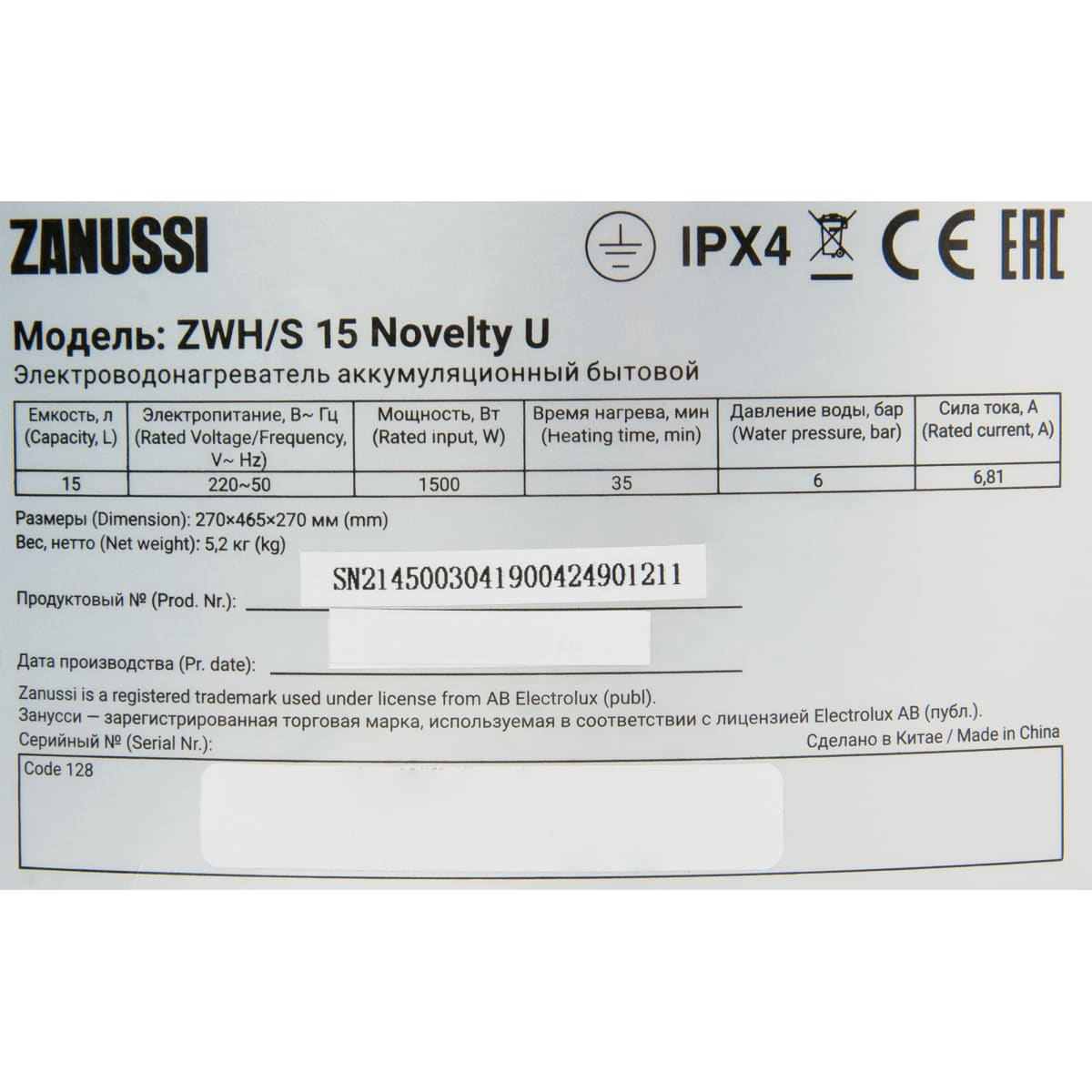 Электроводонагреватель накопительный Zanussi ZWH/S 15 Novelty U вертикальный, 15 л, нержавеющая сталь