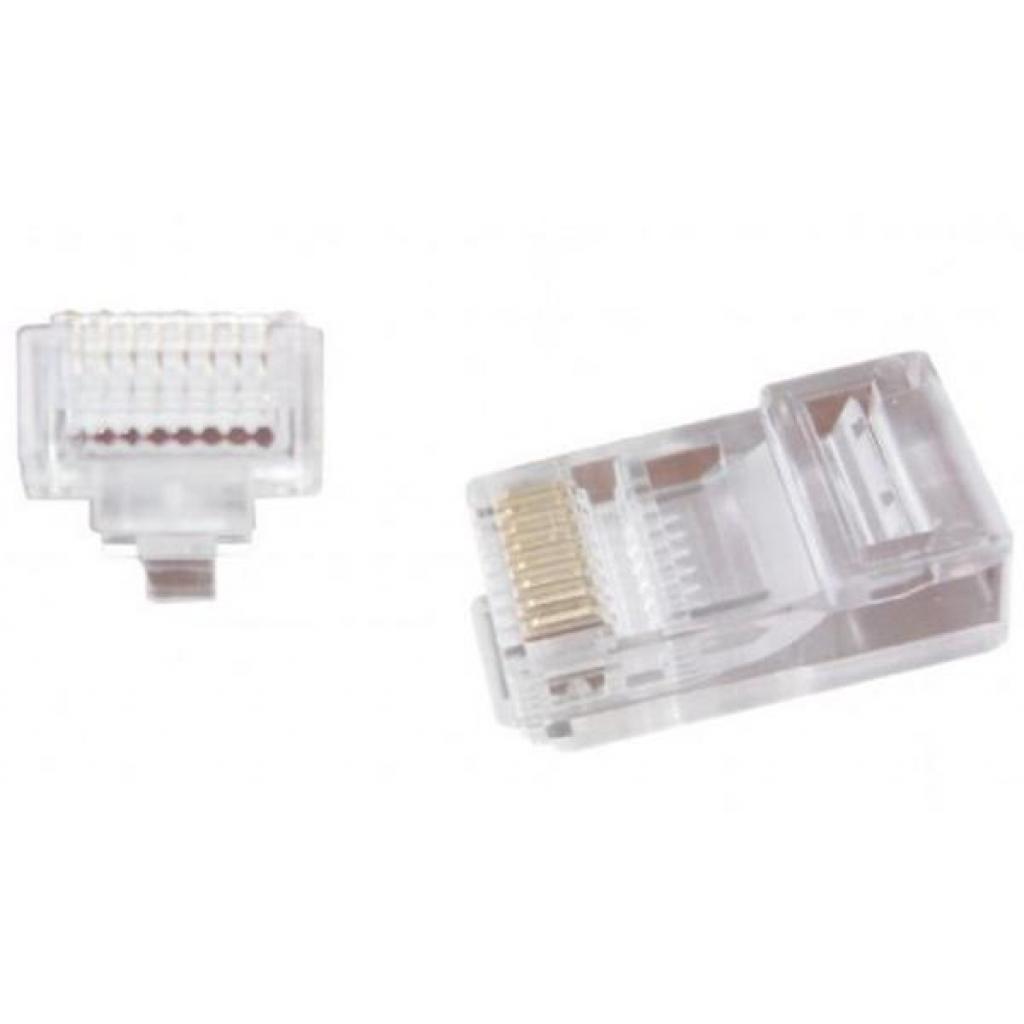 Конектор Cablexpert RJ45 cat.5e UTP 8P8C (наскрізне отв., позолочені. конт.) 50 шт (LC-PTU-01/50)Роз'єм-вилка 8P8C для мережевого кабелю з наскрізним отвором. Ці інноваційні роз'єми спрощують їх установку на кінцях мережевих кабелів, які просто пропускаються крізь роз'єм. Це дозволяє легко перевірити правильність установки, порядок проводів. Так само кабель тепер може бути максимально щільно вставлений всередину роз'єму, для надійного закріплення.