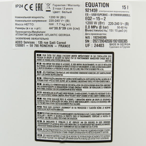 Электроводонагреватель накопительный Equation-15US под мойку, 15 л, эмаль