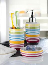- Комплектация дозатор жидкого мыла, мыльница, стакан для зубных щеток