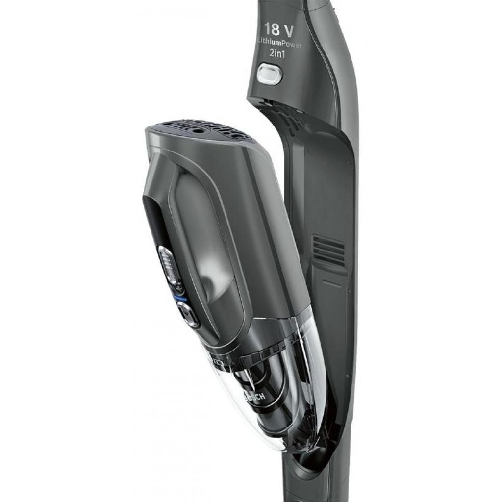Щітка Motorized PowerBrush. Електрична щітка Motorized PowerBrush забезпечить оптимальне прибирання на твердих поверхнях і килимах. Два в одному. Акумуляторний пилосос Bosch BBHL21841 складається з двох елементів - основна конструкція і додатковий пилосос. Маленький і мобільний він буде актуальний для очищення меблів або автомобіля.
