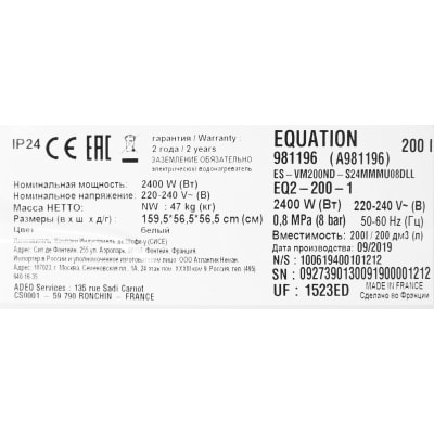 Электроводонагреватель накопительный Equation EQ2-200 вертикальный, 200 л, эмаль