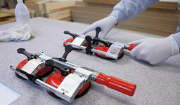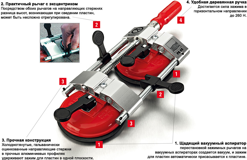 Качественный зажим изготовлен из прочной стали и пластика. Он обеспечивает правильное положение детали при ее обработке. Работает с разнородными заготовками. Для предотвращения повреждения на гладких поверхностях в модели имеются специальные накладки на губки.
