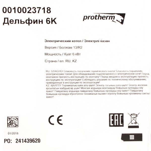 Котёл электрический 220/380 В Protherm Дельфин 6 кВт