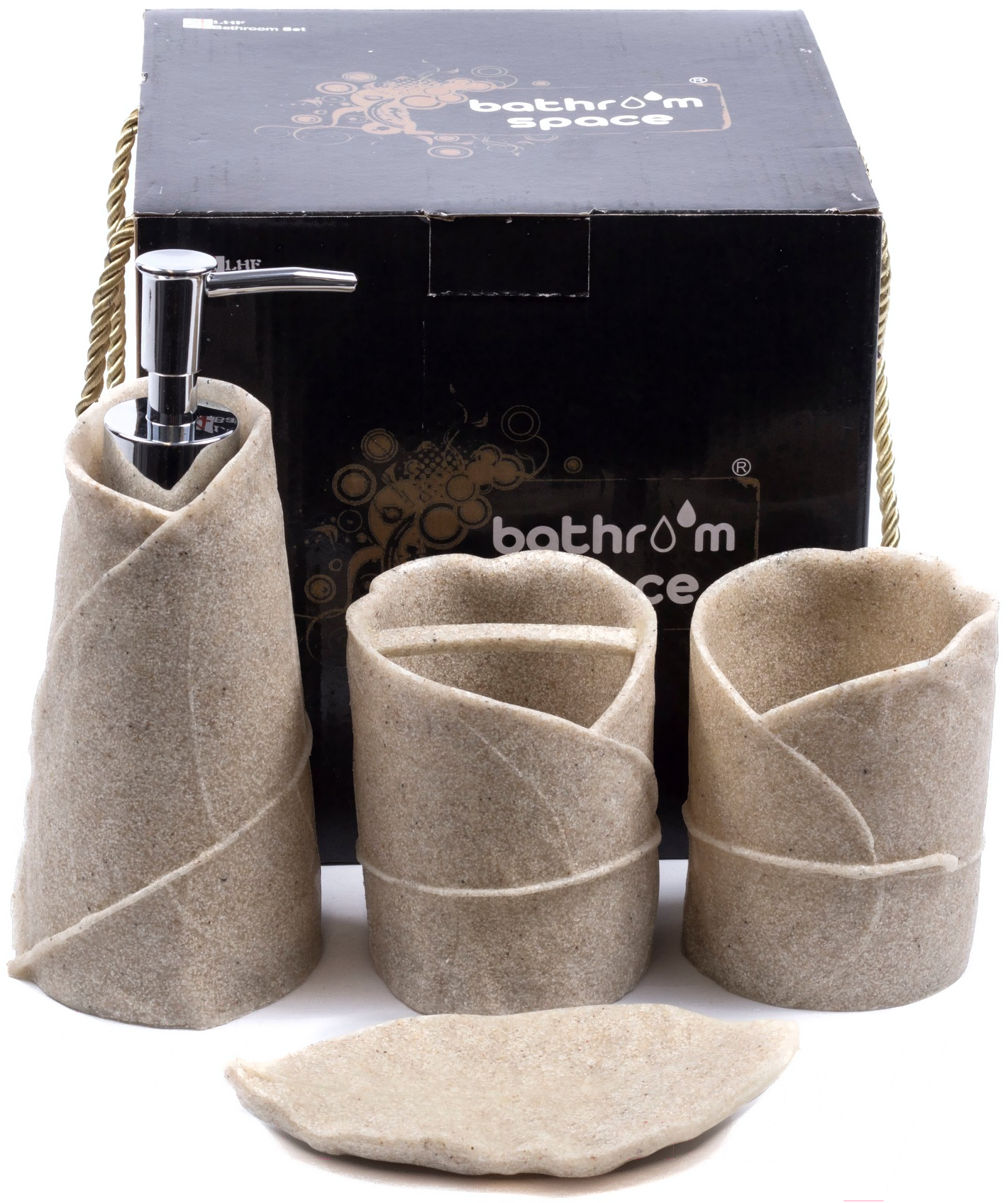 - Комплектация дозатор жидкого мыла, мыльница, стакан для зубных щеток, стакан косметический