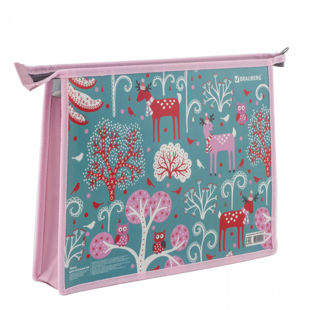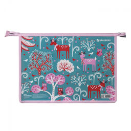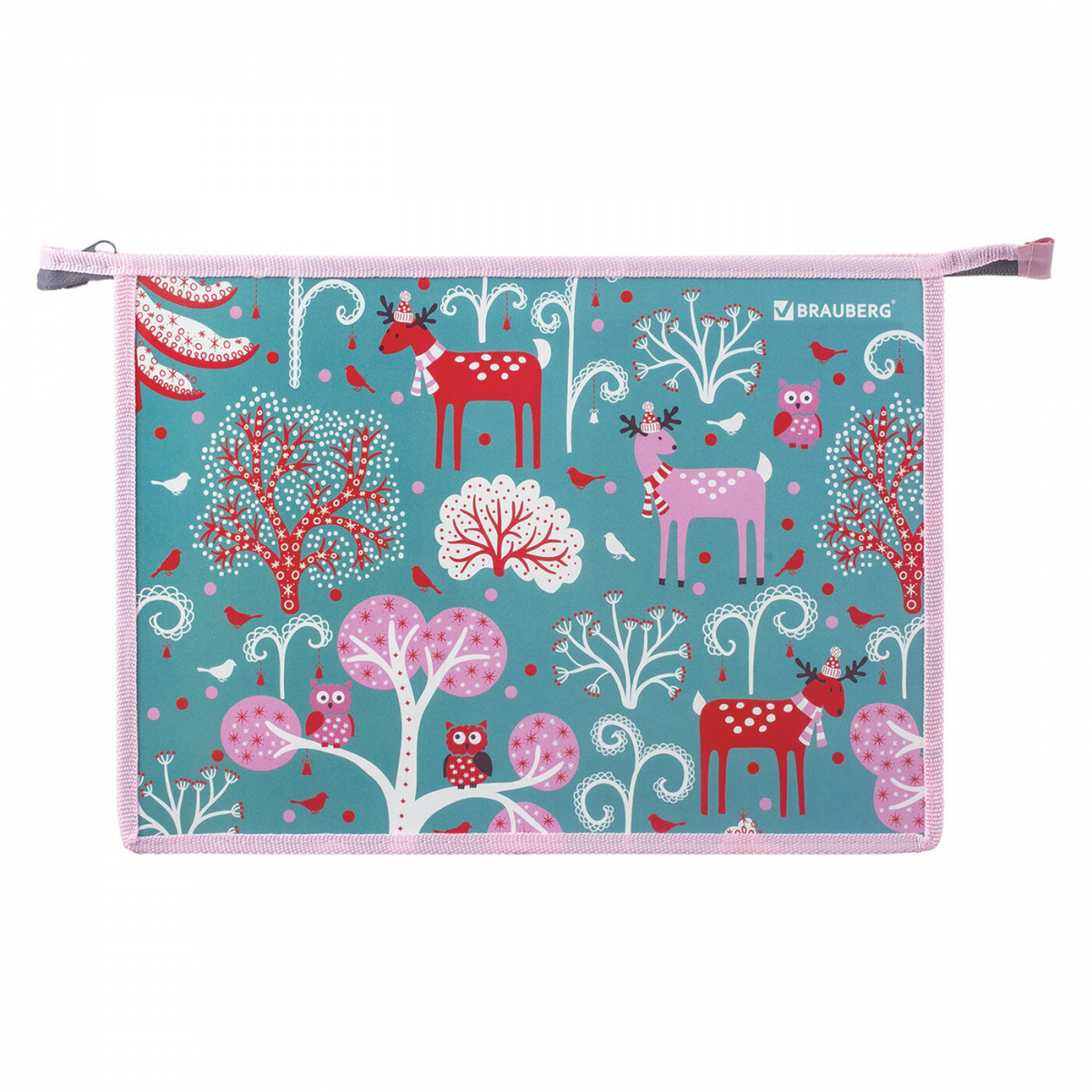 Папка для тетрадей Brauberg, А4, 1 отделение, пластик, цветная печать, молния сверху, Лес, 228135