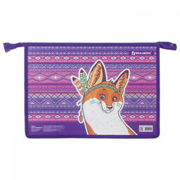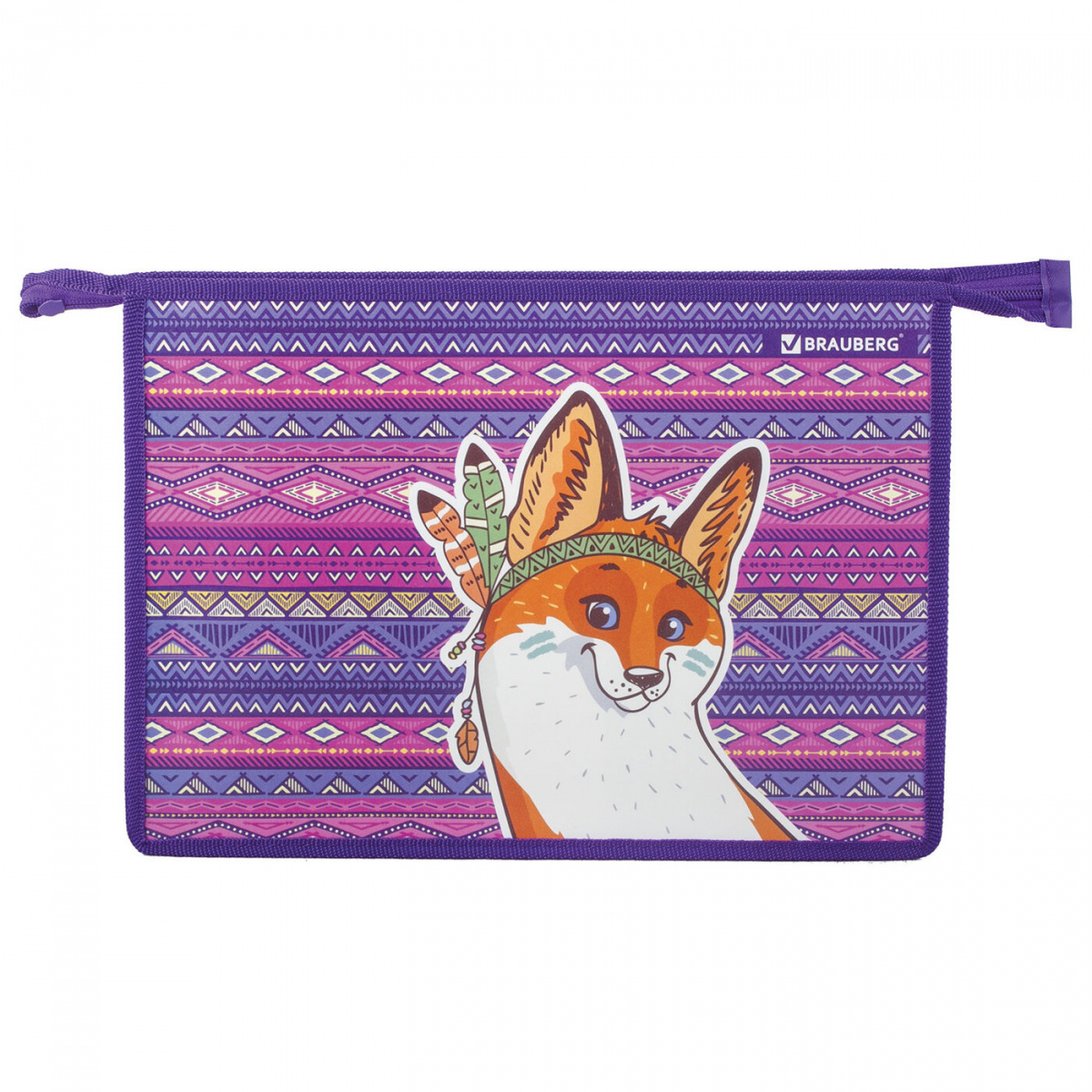 Папка для тетрадей Brauberg, А4, 1 отделение, пластик, молния сверху, Лис, 228134
