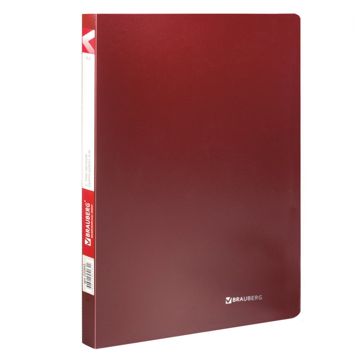 Папка с пластиковым скоросшивателем Brauberg "Office", красная, до 100 листов, 0,5 мм, 222643