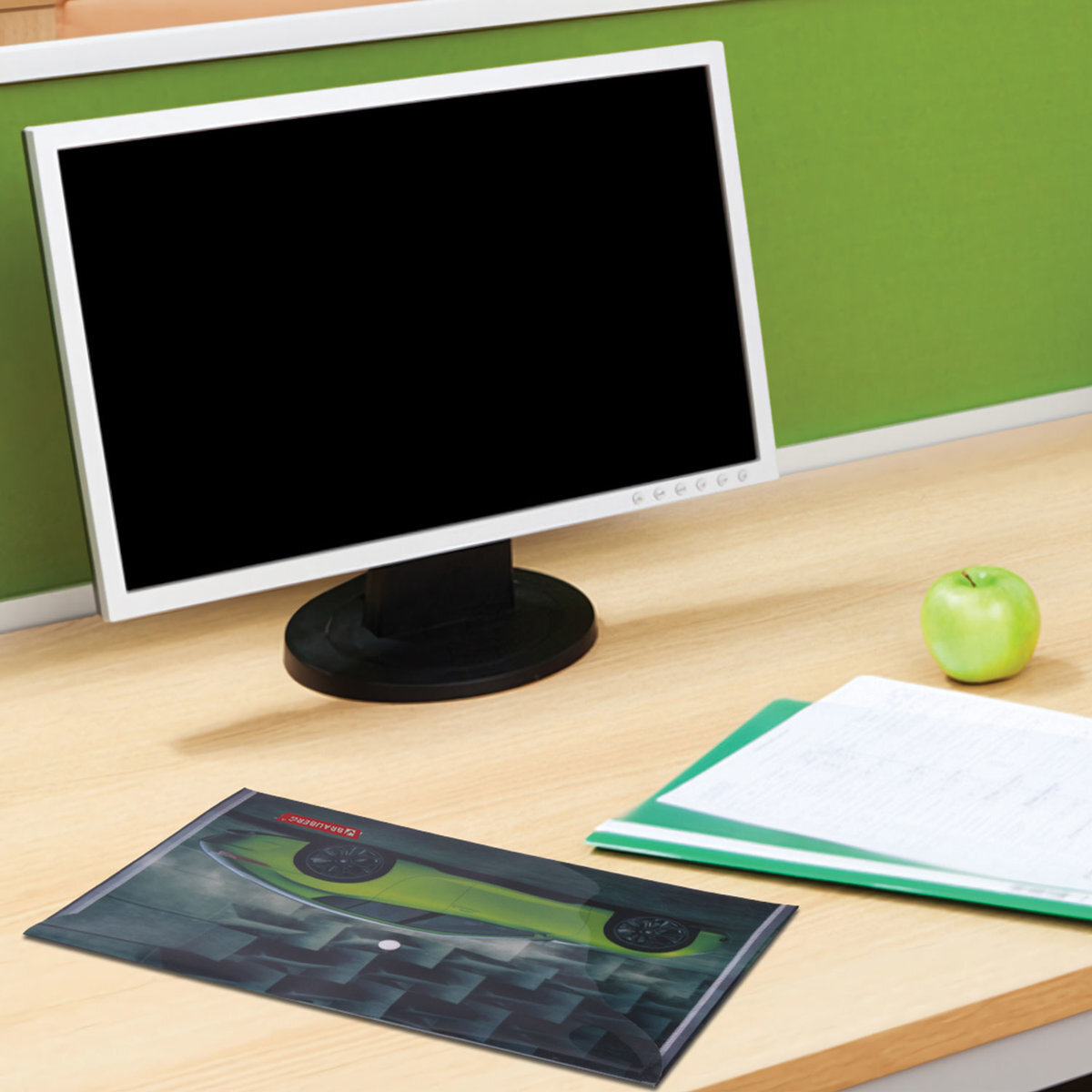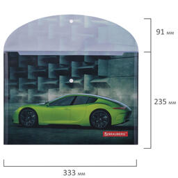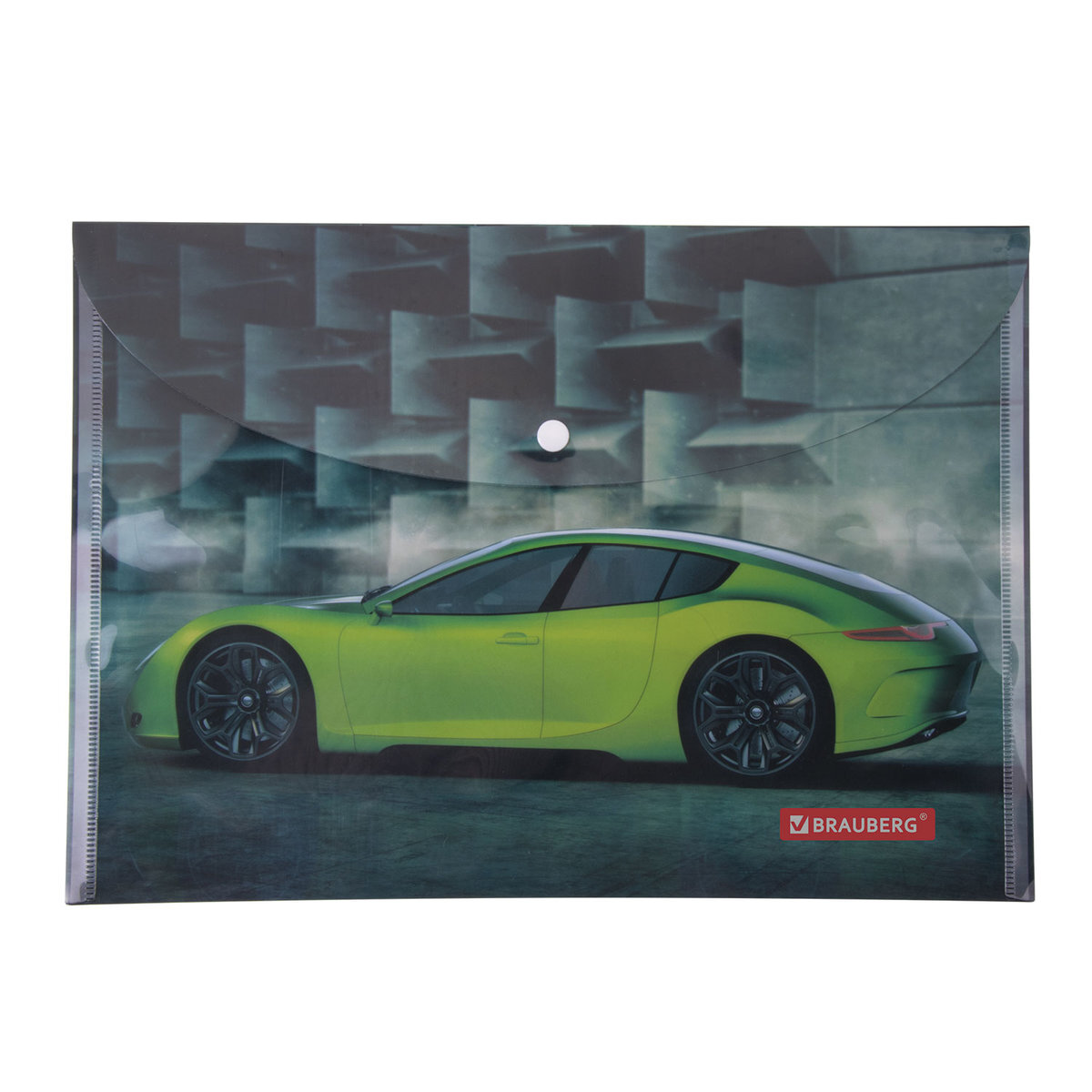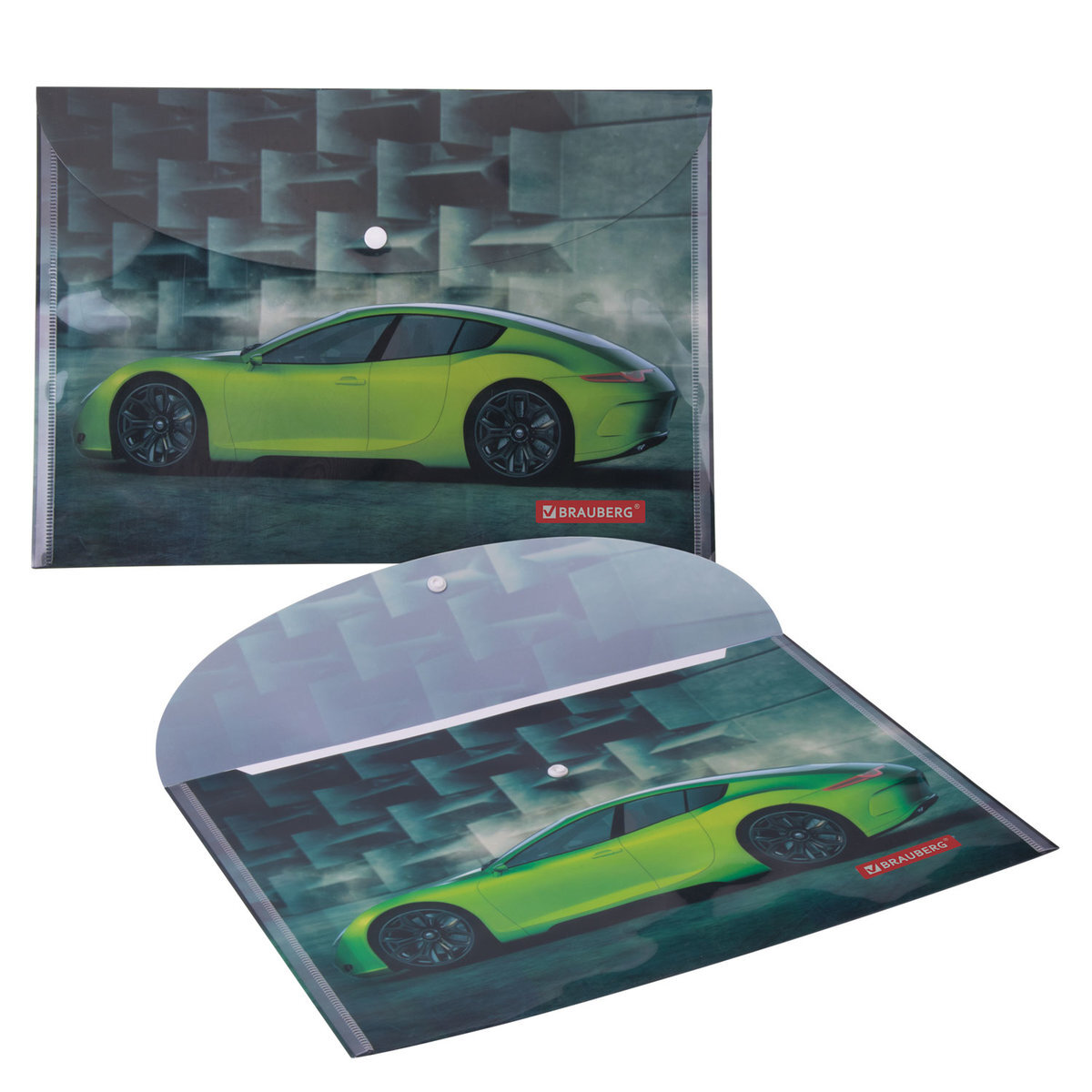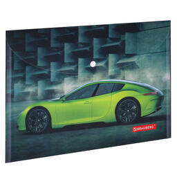 Папка-конверт с кнопкой Brauberg "Sport Car", А4, 160 мкм, до 100 листов, цветная печать, 228043