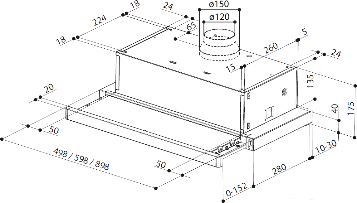- Дополнительная информация в комплекте переходник воздуховода 150 - 120 мм