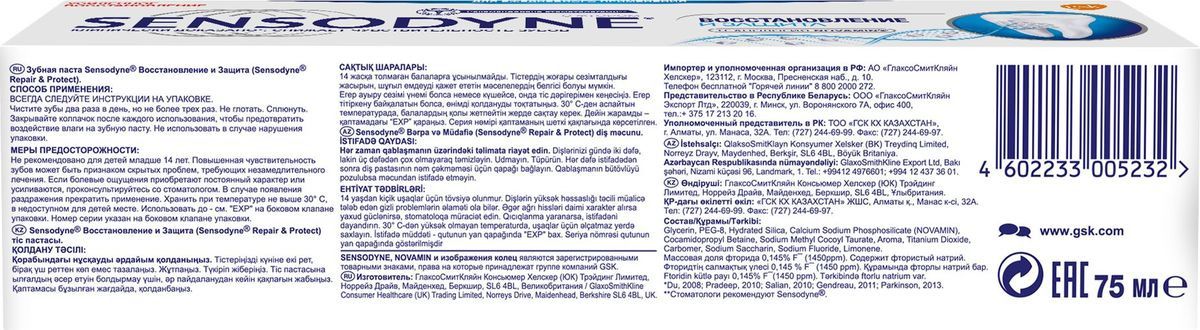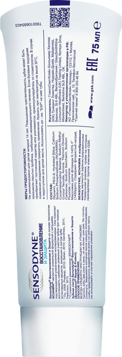 Зубная паста Sensodyne Восстановление и защита, для чувствительных зубов, 75 мл
