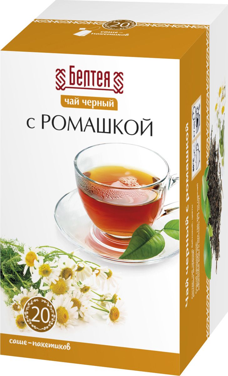 - Состав чай черный байховый, цветки ромашки аптечной