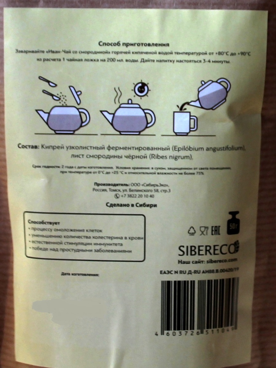 - Состав Кипрей узколистный ферментированный, лист смородины черной