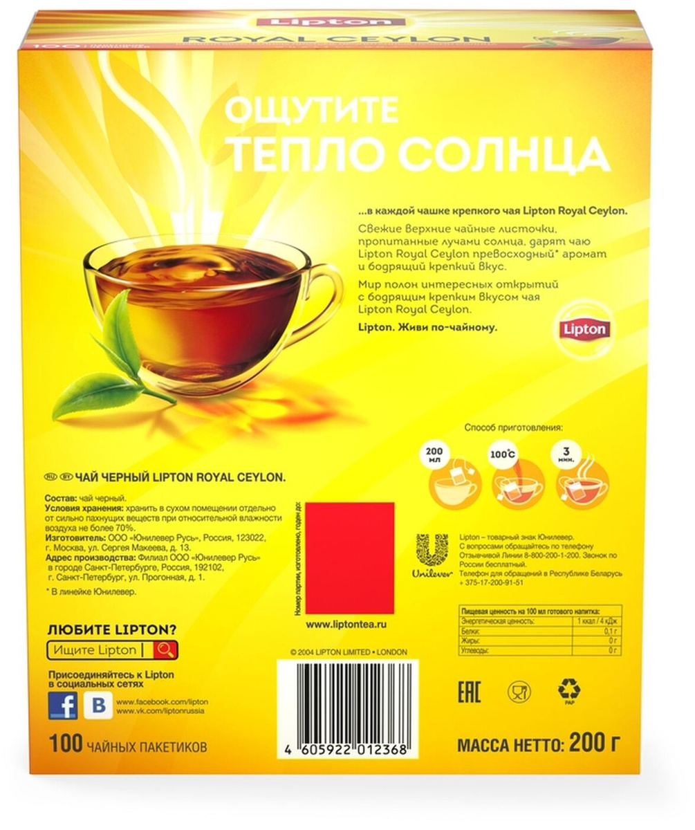 Lipton Royal Ceylon черный чай в пакетиках, 100 шт
