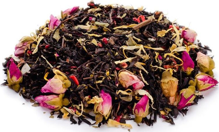 - Состав: чёрный чай, бутоны роз, гибискус, смесь сублимированных ягод, медовые гранулы подсолнечника, сахарные сердечки, лист клубники, лепестки календулы, ароматизаторы "Карамель" и "Лесные ягоды".