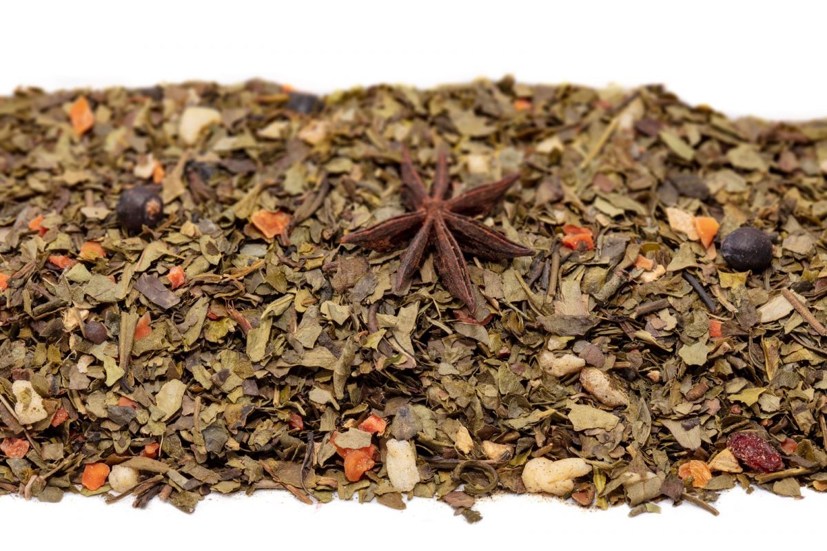 - Состав чай зеленый, морковь кусочки, яблоки кусочки, можжевельник ягода, барбарис ягода, бадьян, имбирь кусочки, ароматизатор натуральный