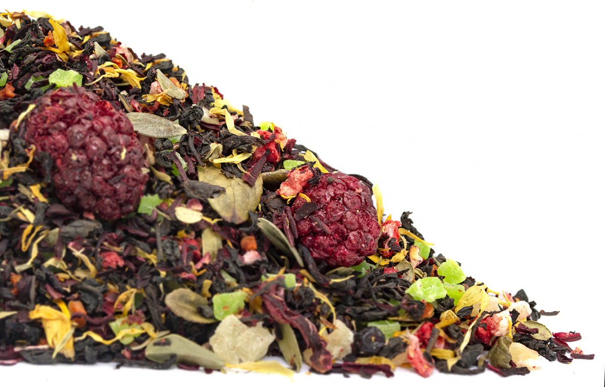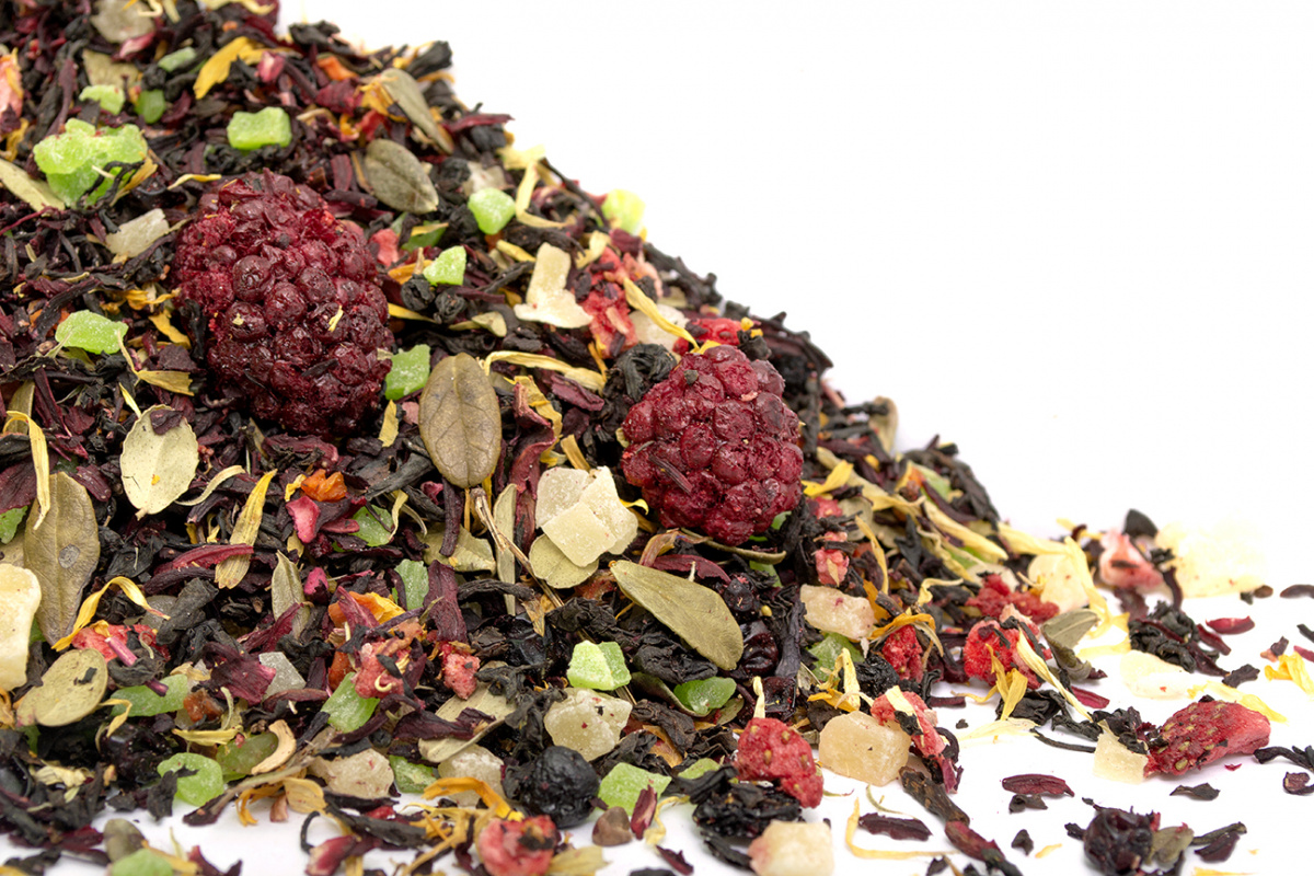 - Состав: Гибискус (каркадэ) соцветия, чай черный, ананас, киви и груша кусочки, клюква ягоды, брусника лист, черная смородинна ягоды, ежевика ягоды, клубника кусочки, календула лепестки, морковь кусочки.