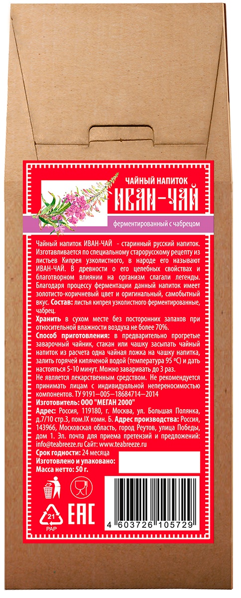- Состав листья кипрея узколистного ферментированные, чабрец