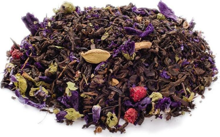 - Состав чёрный чай, ягоды красной смородины, изюм, цветы мальвы, кардамон, красный перец чили, кусочки имбиря, листья стевии, ароматизатор "Брусника".