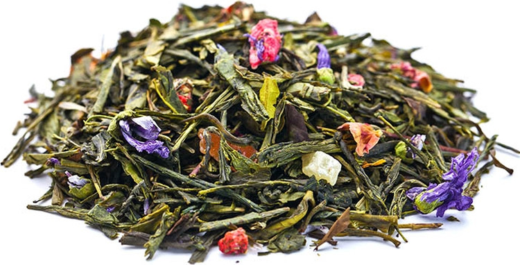 - Состав сенча, бай му дань, кубики папайи и ананаса, цветы мальвы, лепестки розы, клубника, малина, ароматизаторы "Клубника" и "Малина".