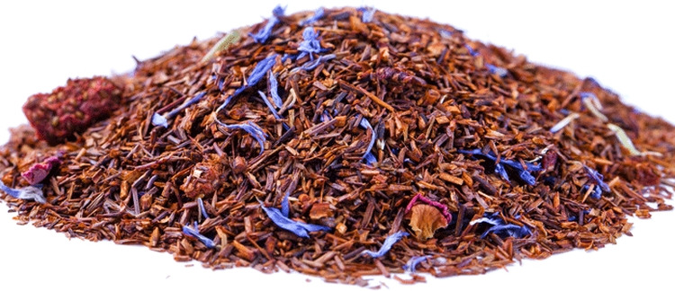 - Состав ройбос, кусочки папайи и клубники, лепестки василька, ароматизаторы "Карамель" и "Персик".