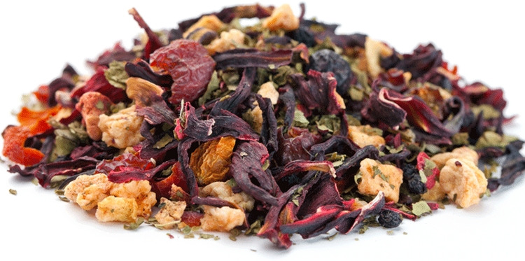 - Состав: гибискус, кусочки шиповника и яблок, листья и ягоды ежевики, садовая бузина, кусочки клубники, черная смородина, гранулированная малина, ароматизатор "Малина".