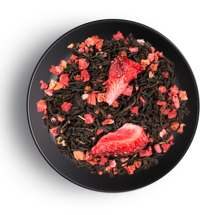 - Состав Индийский чай, кусочки клубники, клубника слайсы.