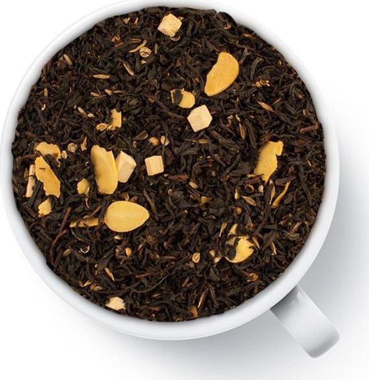 - Состав черный чай, крем-карамель, кумин, слайсы миндаля, кориандр, ароматизатор.