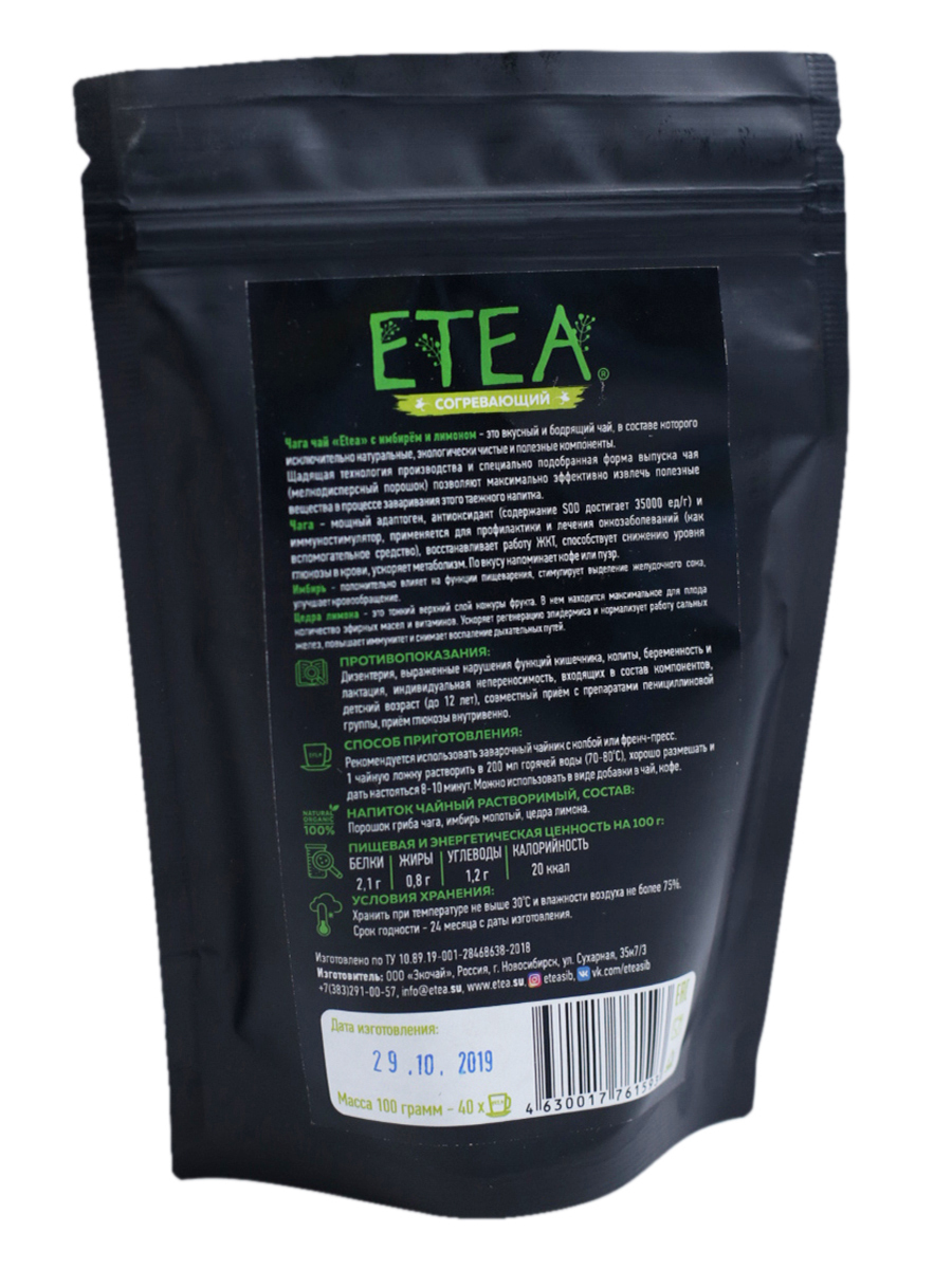 - Состав Порошок гриба чага, имбирь молотый, цедра лимона
