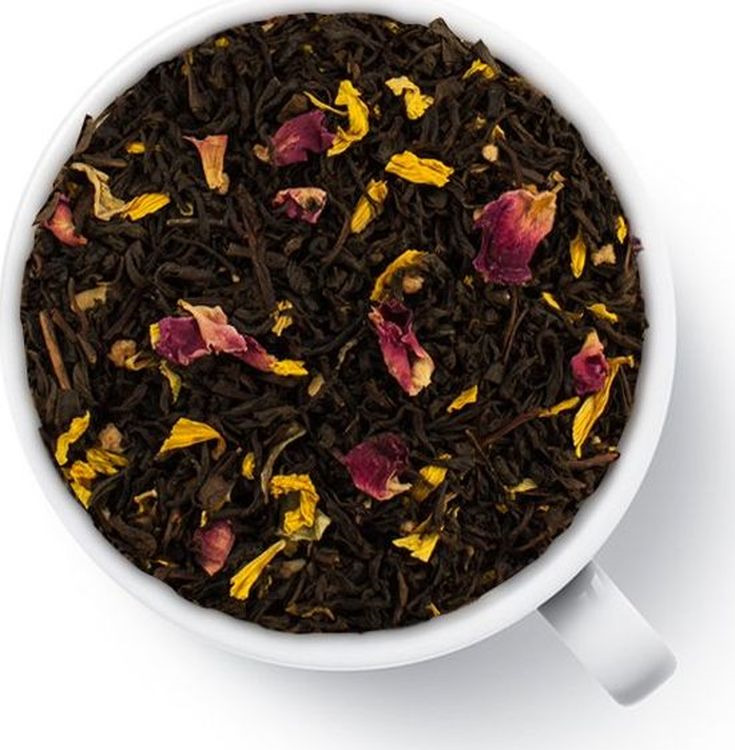 - Состав черный чай, бутоны розы, лепестки индийской розы, кусочки кроканта, лепестки подсолнуха, ароматизатор.