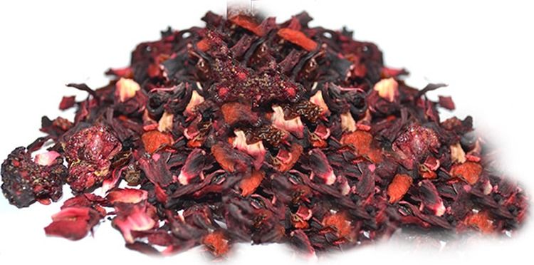 - Состав гибискус, плоды шиповника, ягоды годжи и ежевики, кусочки клубники, листья стевии, ароматизатор "Гранат".