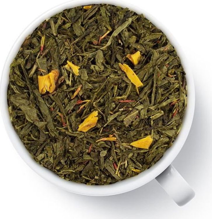 - Состав зелёный чай, лепестки сафлора, хлопья манго, ароматизатор.