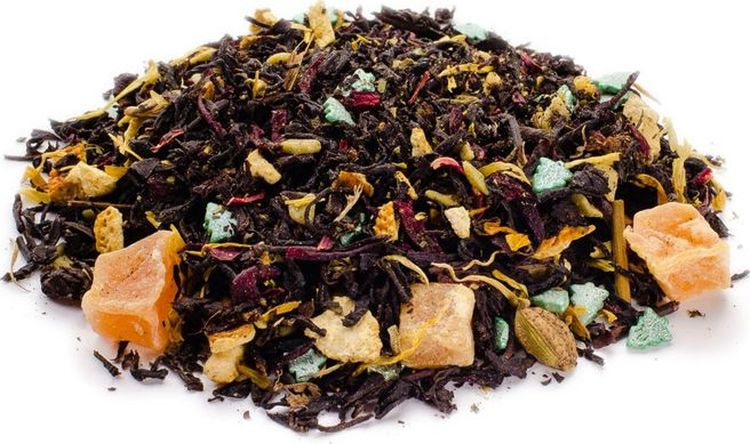 - Состав: чёрный чай, гибискус, кусочки папайи и белого шоколада, листья стевии, цедра апельсина, кардамон, сахарная посыпка, лепестки календулы, ароматизаторы "Апельсин" и "Имбирный пряник".