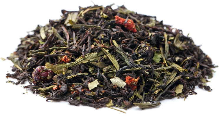 - Состав купаж черного и зеленого чая, кусочки и листья клубники, ежевика, арония, ароматизатор "Лесная ягода".