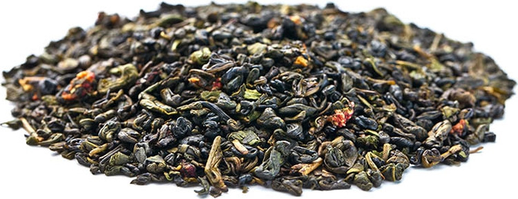 - Состав зеленый чай ганпаудер, кусочки клубники, ароматизаторы "Клубника" и "Карамель".