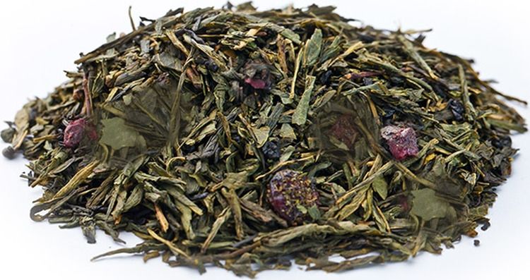 - Состав зеленый чай Сенча, кусочки вишни и клюквы, листья клубники и грецкого ореха, ароматизатор.