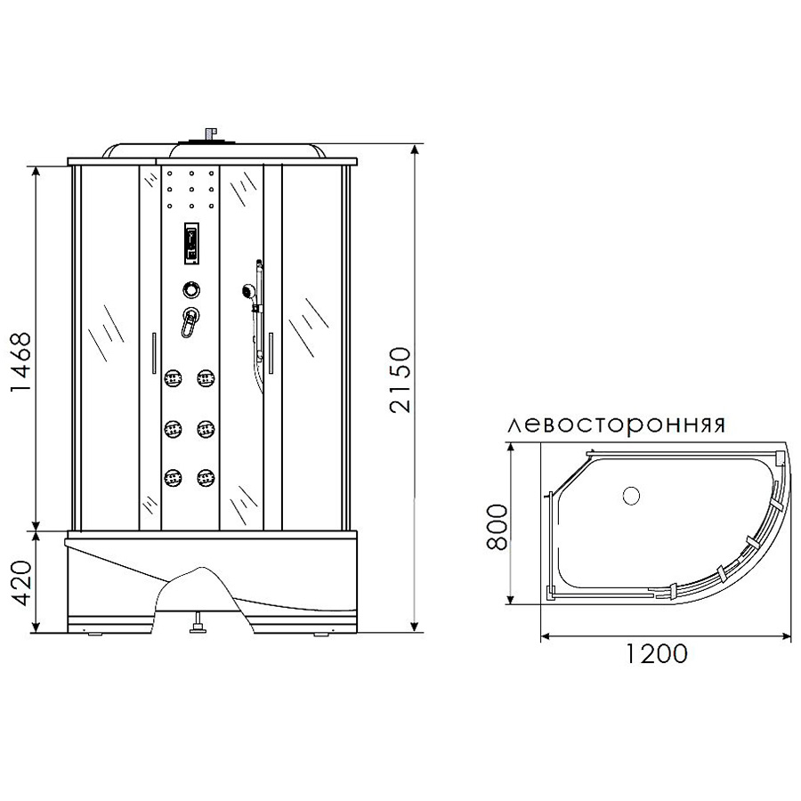 • Форма поддона закругленный асимметричный