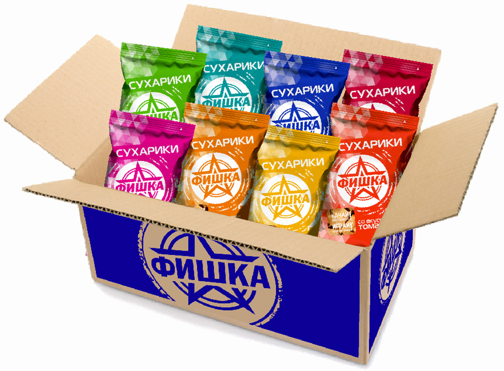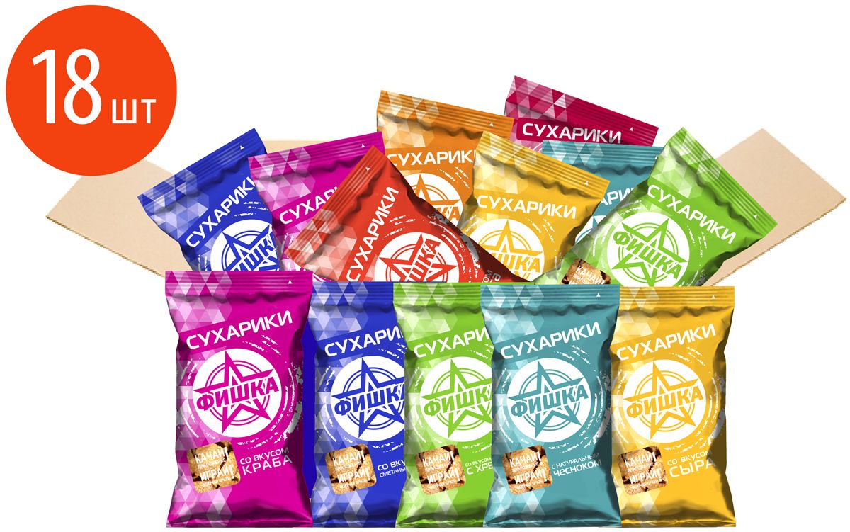 Фишка сухарики коробка ассорти, 130 г, 18 шт