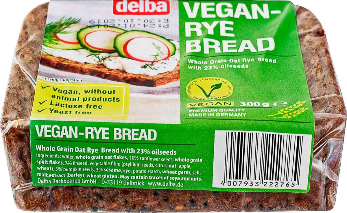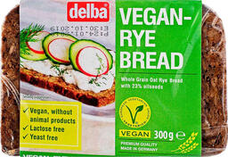 - Состав: Хлеб Delba цельнозерновой вегетарианский со злаками, 300 гр.Состав: Вода, цельнозерновые овсяные хлопья ,семена подсолнечника 10% ,цельнозерновые полбяные хлопья, семена льна 7%,растительная клетчатка(семена подорожника, лимон, овес, яблоко,пшеница), семена тыквы 3%,семена кунжута 3%, рожь, картофельный крахмал, ростки пшеницы, соль, экстракт ячменного солода, пшеничный белок. Может содержать сою и орехи. Не содержит продукты животного происхождения, лактозу и дрожжи.Пищевая и энергетическая ценность на 100 грамм продукта:Энергетическая ценность: 1016 кДж/224 кКалБелки: 8,9 граммаЖиры: 13,3 граммаУглеводы: 16,1 граммКлетчатка: 12,3 граммаСоль: 1 грамм Масса нетто: 300 граммУсловия хранения: Хранить в сухом прохладном месте при температуре от 0 до 25 градусов Не подвергать воздействию прямого солнечного светаСрок годности: 285 днейСделано в Германии