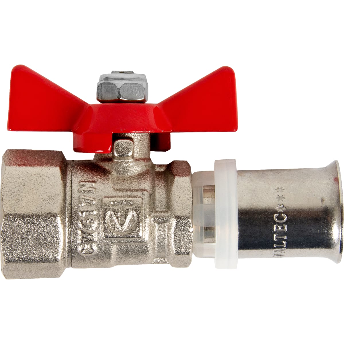 Кран шаровый Valtec, для металлопластиковой трубы, под пресс d16х1/2"ВР, латунь