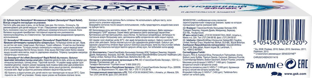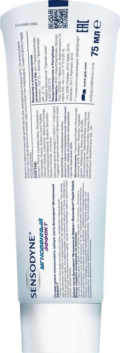 Зубная паста Sensodyne Мгновенный эффект, для чувствительных зубов, 75 мл